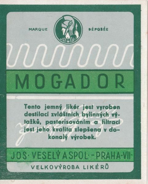 likér Mogador - 11 x 9 cm, Josef Veselý a spol. Praha VII |