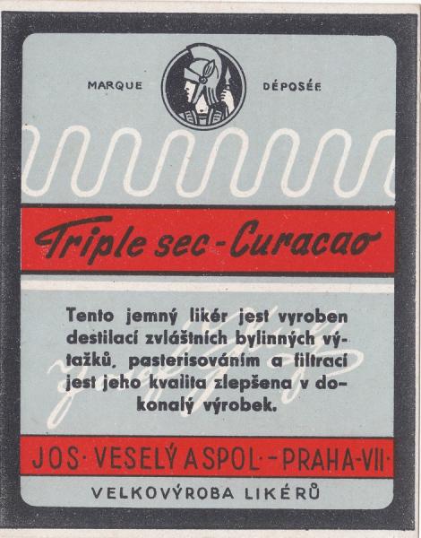 likér Triple sec - Curacao - 11 x 8 cm, Josef Veselý a spol. Praha VII |