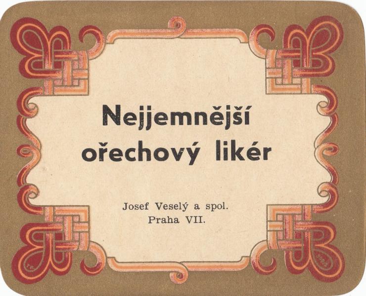 Nejjemnější ořechový likér - 10 x 8 cm, Josef veselý a spol. Praha VII |