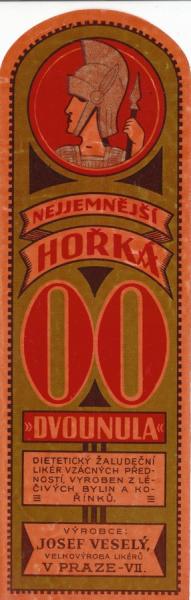 Nejjemnější hořká dvounula - 20 x 6,5 cm, Josef Veselý a spol. Praha VII |