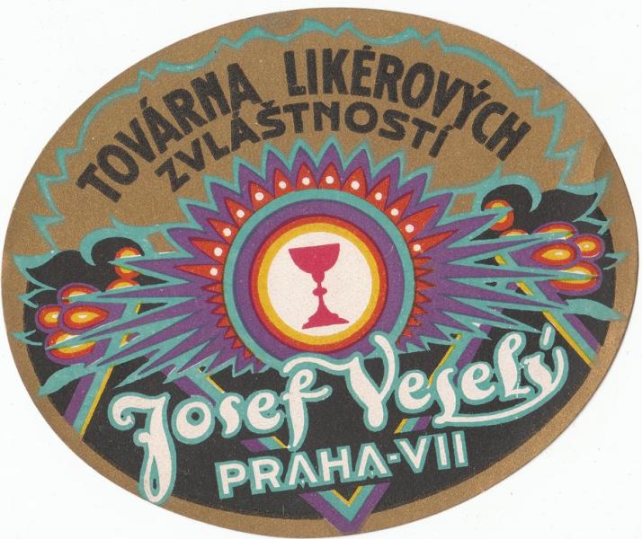 Továrna likérových zvláštností - 10 x 8 cm, Josef veselý a spol. Praha VII |