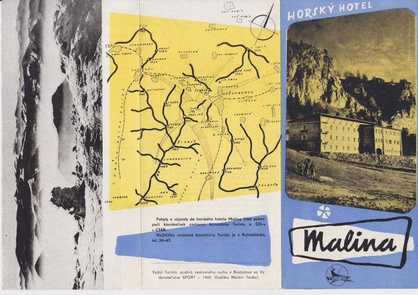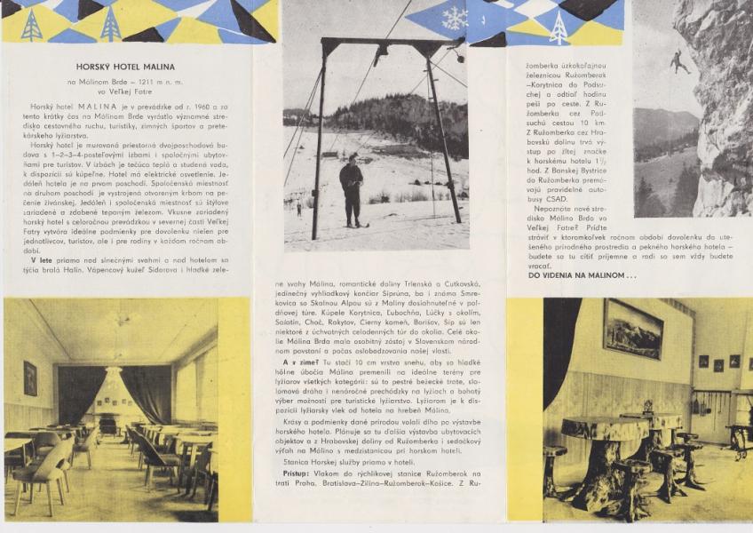 Brožura horský hotel Malina, Velká Fatra - Harmonikové skládání na délku formátu A4. |