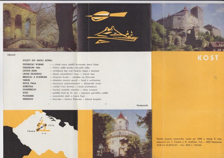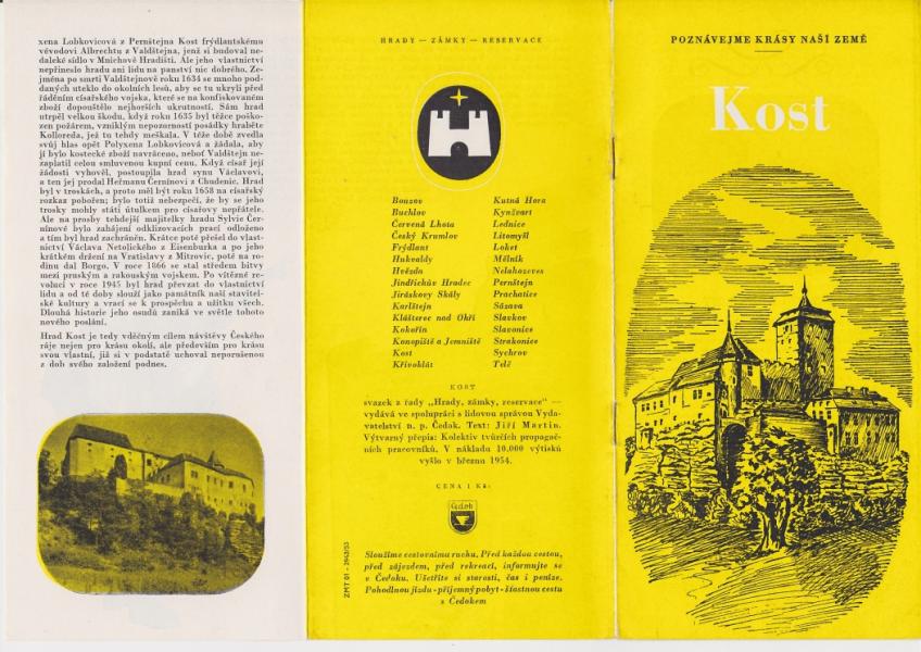 Brožura hrad Kost, okr. Jičín - Rozměry 20,5 x 10 cm, 5 stran textu, fotografie. |