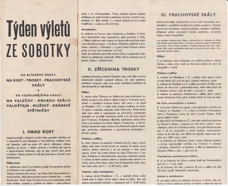 Brožura Týden výletů ze Sobotky do blízkého okolí - Harmonikové skládání, rozměry 42 x 30 cm. |
