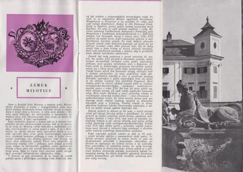 Brožura zámek Milotice, okr. Hodonín - Harmonikové skládání, scvaklá ze třech A4, 5 stránek textu. |