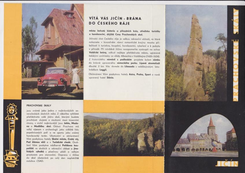 Brožura Jičín, Prachovské skály, Kost - Harmonikové skládání, na délku formát A4. |