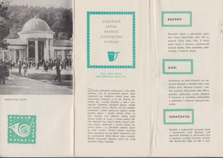 Brožura Nemoci zažív. ústrojí - českoslov. lázně - 10 x 21 cm, poskládaná, 11 stránek textu, fotografie. |