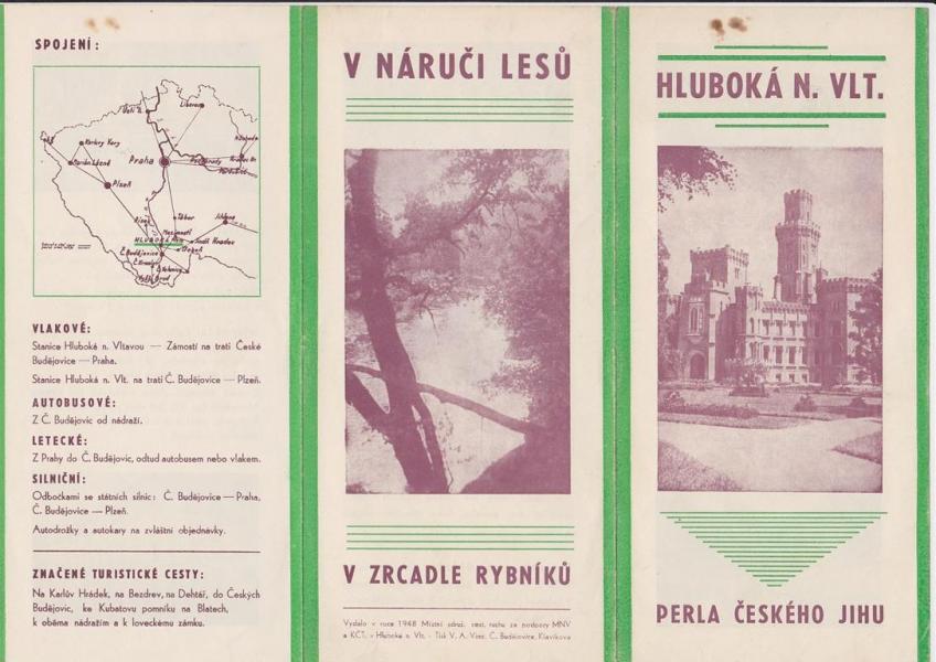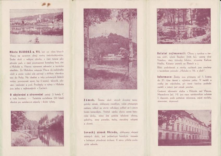 Brožura Hluboká nad Vltavou - Harmonikové skládání, na délku formát A4. Při vrchním okraji ušpiněno. |