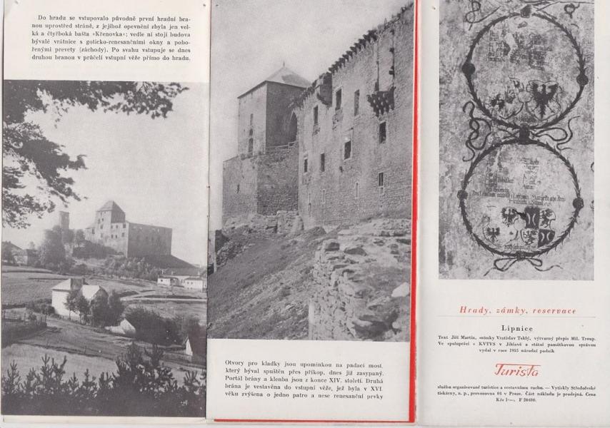 Brožura Zřícenina Lipnice n. Sázavou, okr. Havlíčkův Brod - 10 x 21 cm, 7 stránek s textem, fotografie. |