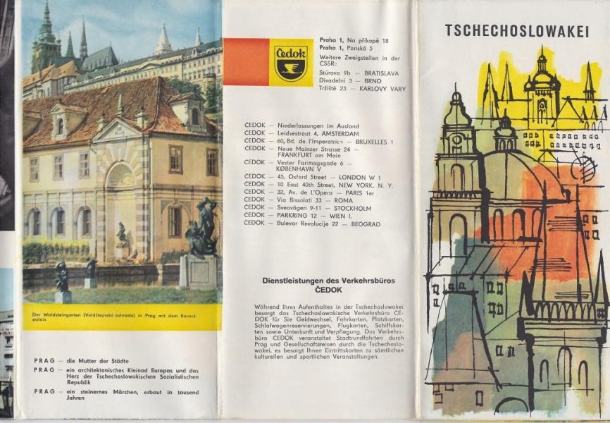 Brožura Tschechoslowakei / Česko - turist. průvodce - Formát o něco větší A2, harmonikové skládání, německým jazykem. |