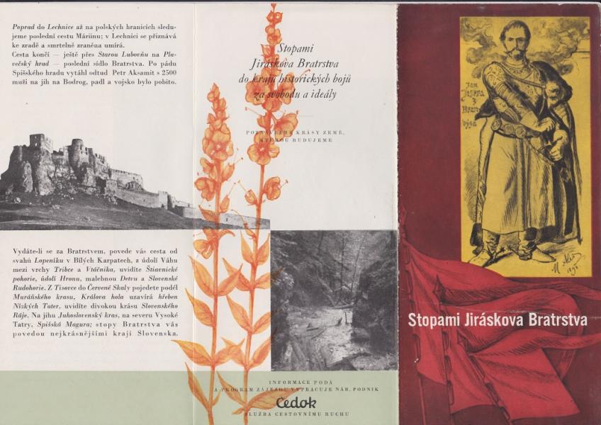 Brožura Stopami Jiráskova Bratrstva - Harmonikové skládání, na délku dvou formátů A4. |