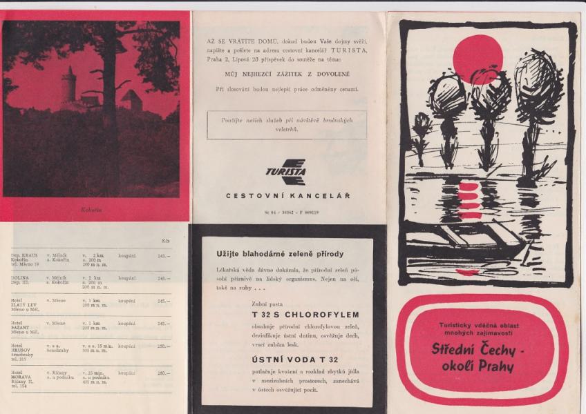 Brožura Střední Čechy, okolí Prahy - Harmonikové skládání, na délku formát A4 (o něco delší). |