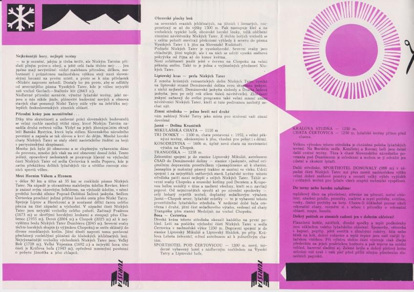 Brožura Zima v Nízkých Tatrách r. 58-59 - Harmonikové skládání, na délku rozměr cca formát A4 (o něco delší). |