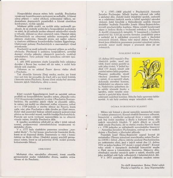 Brožura Prachatice - 21 x 10 cm, 22 stránek, text s obrázky. |