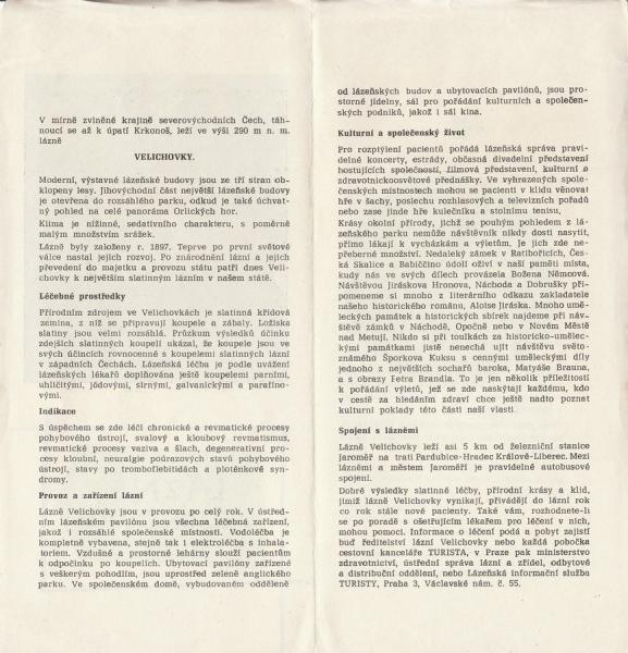 Lázně Velichovky - brožurka |