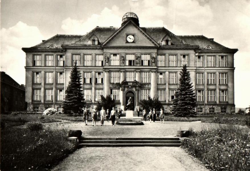 Lomnice nad Popelkou - škola - prošlý, ohyby v rohu |