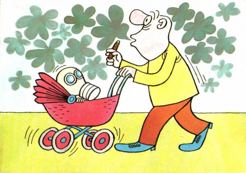 L. Báča - kouřící pán s dítětem - prošlý |