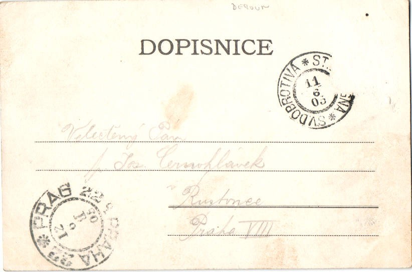 Poříčí nad Sázavou - Stopy po nalepení |