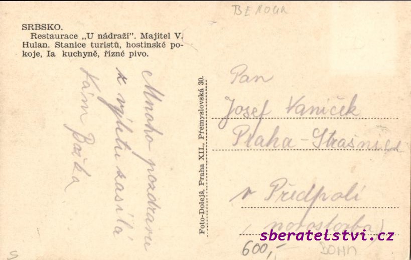 Srbsko- restau. u nádraží majit.V. Hulan - |
